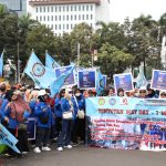 Hari Buruh, Cabut Omnibus Law hingga Tolak Upah Murah Jadi Tuntutan Utama Kaum Buruh Nasional|May 2, 2024by Mina Jakarta – Ribuan buruh memadati kawasan Patung Kuda Silang Monas, Gambir, Jakarta